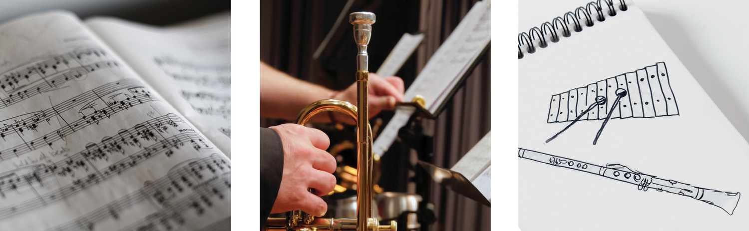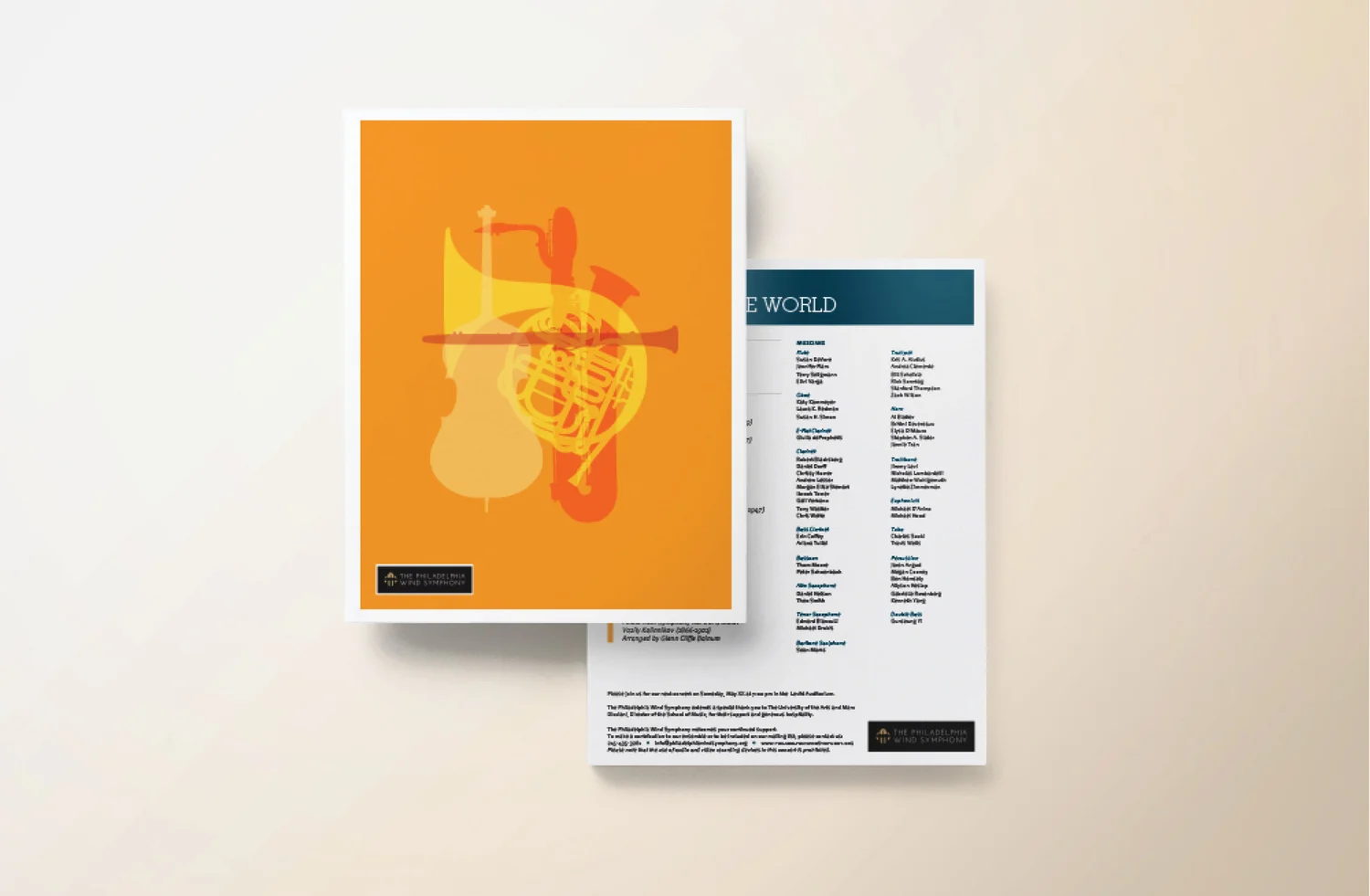 A saturated, monochromic overlay pattern of wind instruments was both engaging and set a style for future performance promotions.
